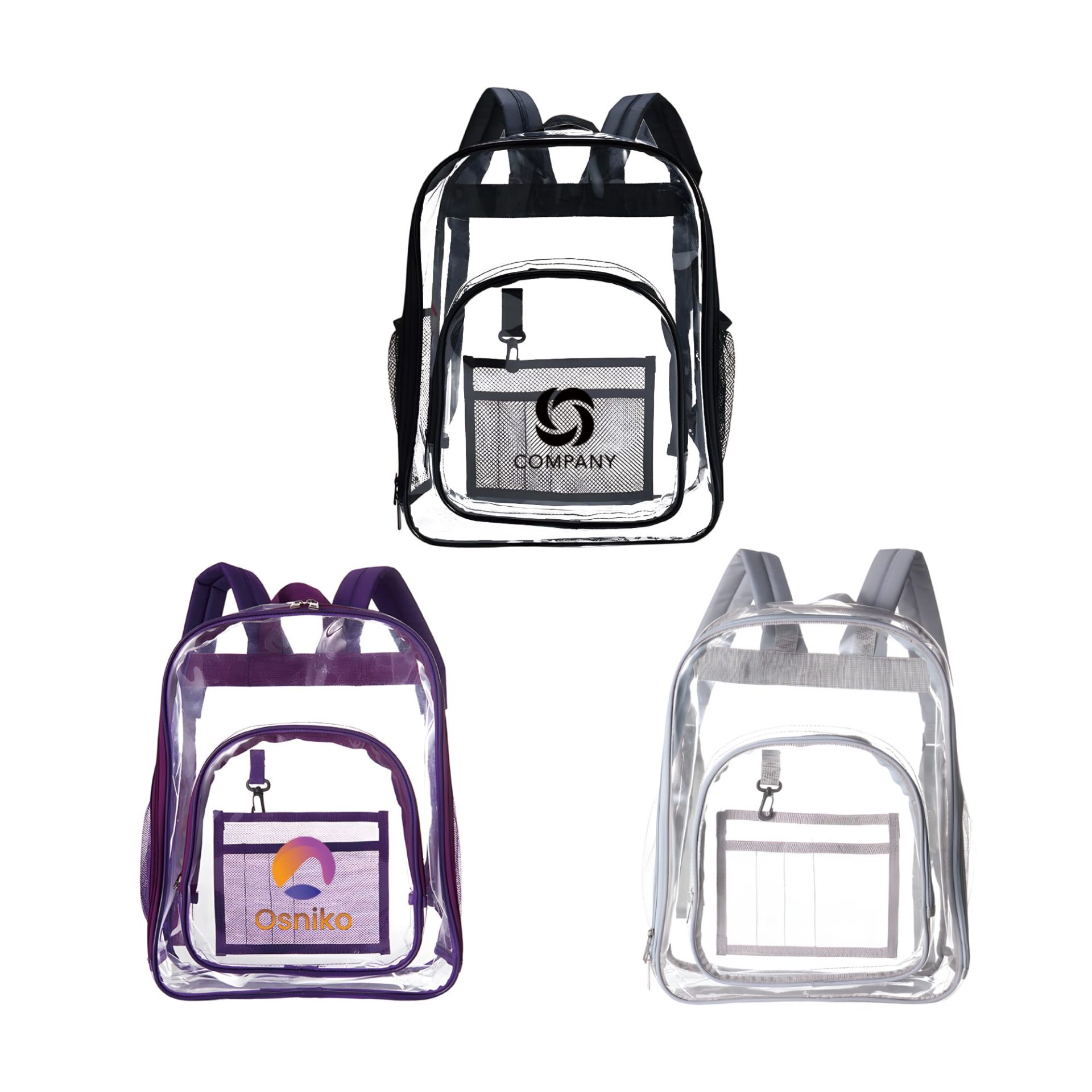 Showcase your brand with our Heavy Duty Transparent Backpack. Soft adjustable straps provides all-day comfort with no pressure. Made from 0.3mm thick transparent PVC. With screen print or digital print to highlight your logo. Built-in mesh compartment keeps items organized and easy to find. Ideal for those who value practicality and style — carry more, stay sorted, and move freely!