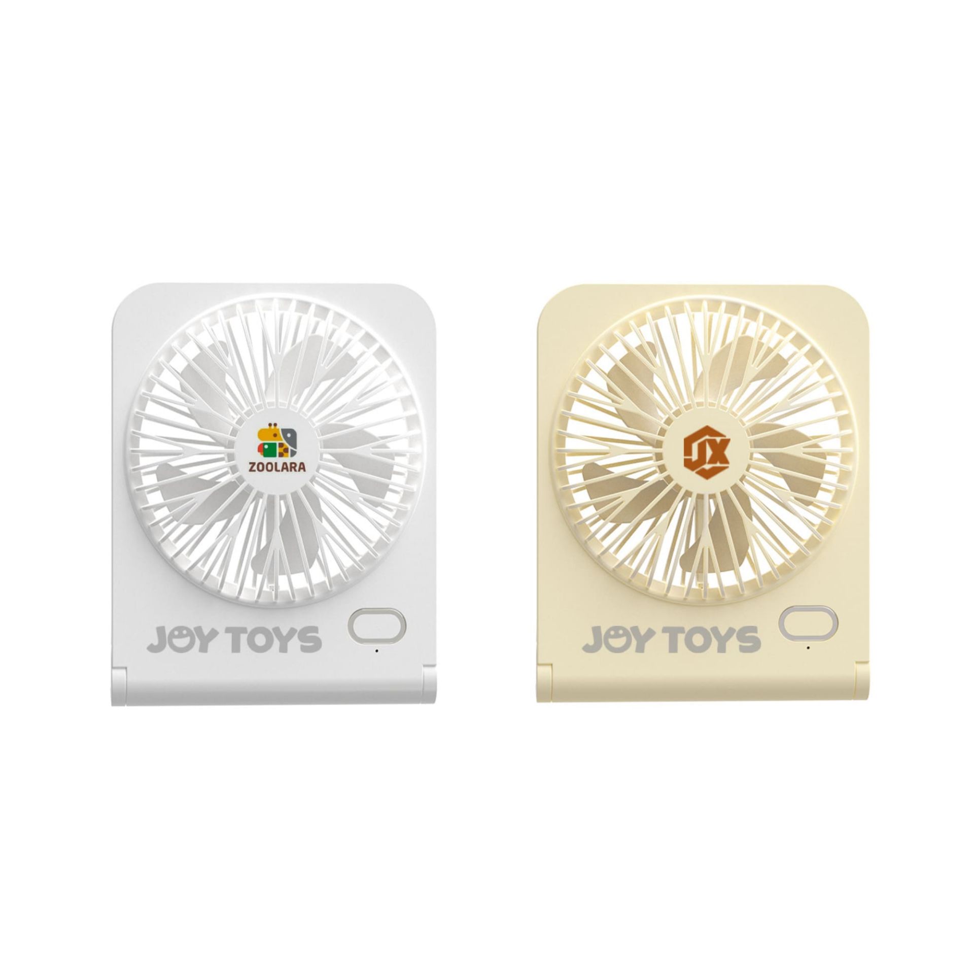 Stay cool and productive with our Mini Desk Fan! Made from durable ABS material, The max use time is about 6 hours. Available in white or light yellow colour. Customize it with screen print, UV print, or engraving. Each fan comes with a standard box, user manual, and USB cable. Perfect for your desk, home, or office, it’s the ideal way to beat the heat in style!