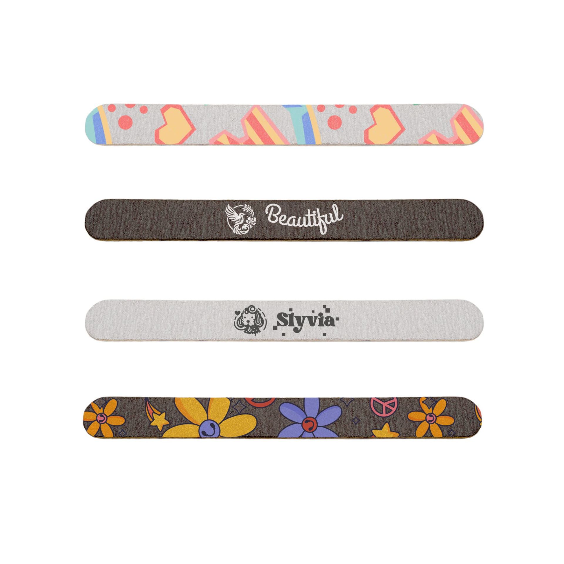 Care for your nails with our Pack of 50 Wooden Straight Shape Nail Files, crafted from wood and sandpaper. Featuring a straight shape with 100 grit on one side and 180 grit on the other. With Digital UV printing or Pad printing to showcase your logos or brand messages. Perfect for salons, nail studios, or bulk promotions, our file provides a practical way to promote your brand.
