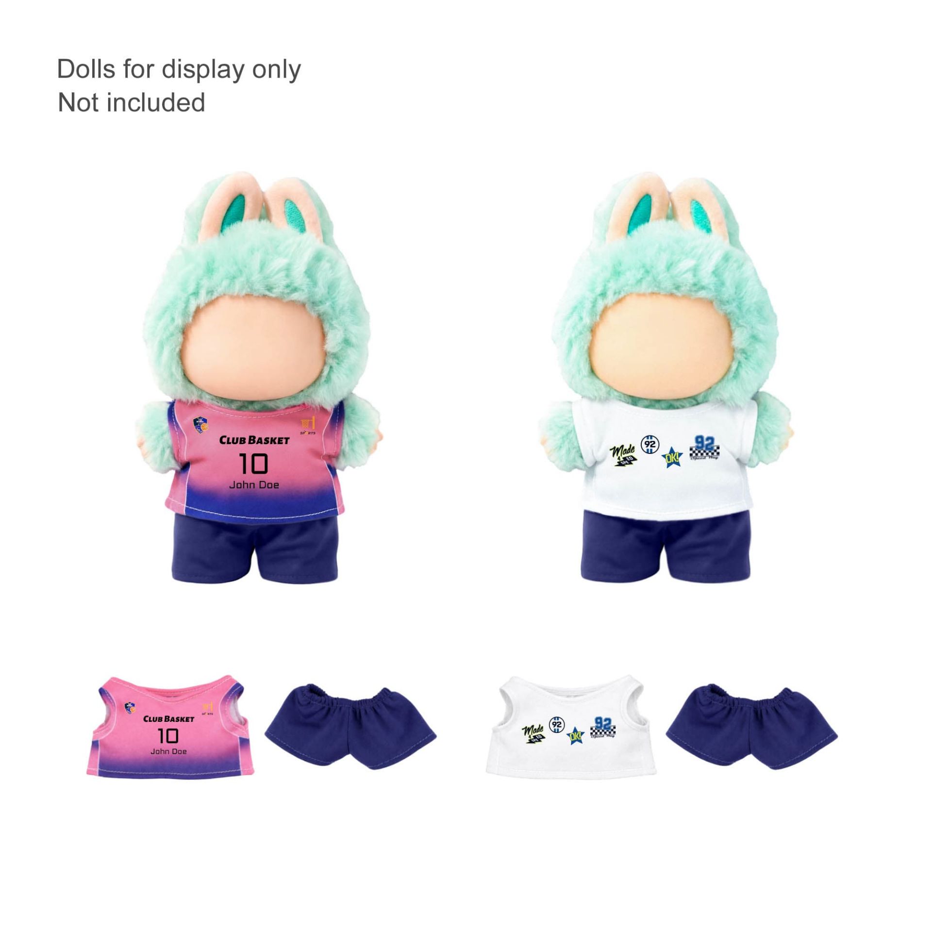 Elevate your collectibles with our Plush Doll Jersey Outfit! Crafted from premium polyester, this set includes a detailed jersey top and matching shorts. Featuring flexible customization with digital print or heat transfer full colour to highlight your brand, it’s ideal for retail collections and promotional use.