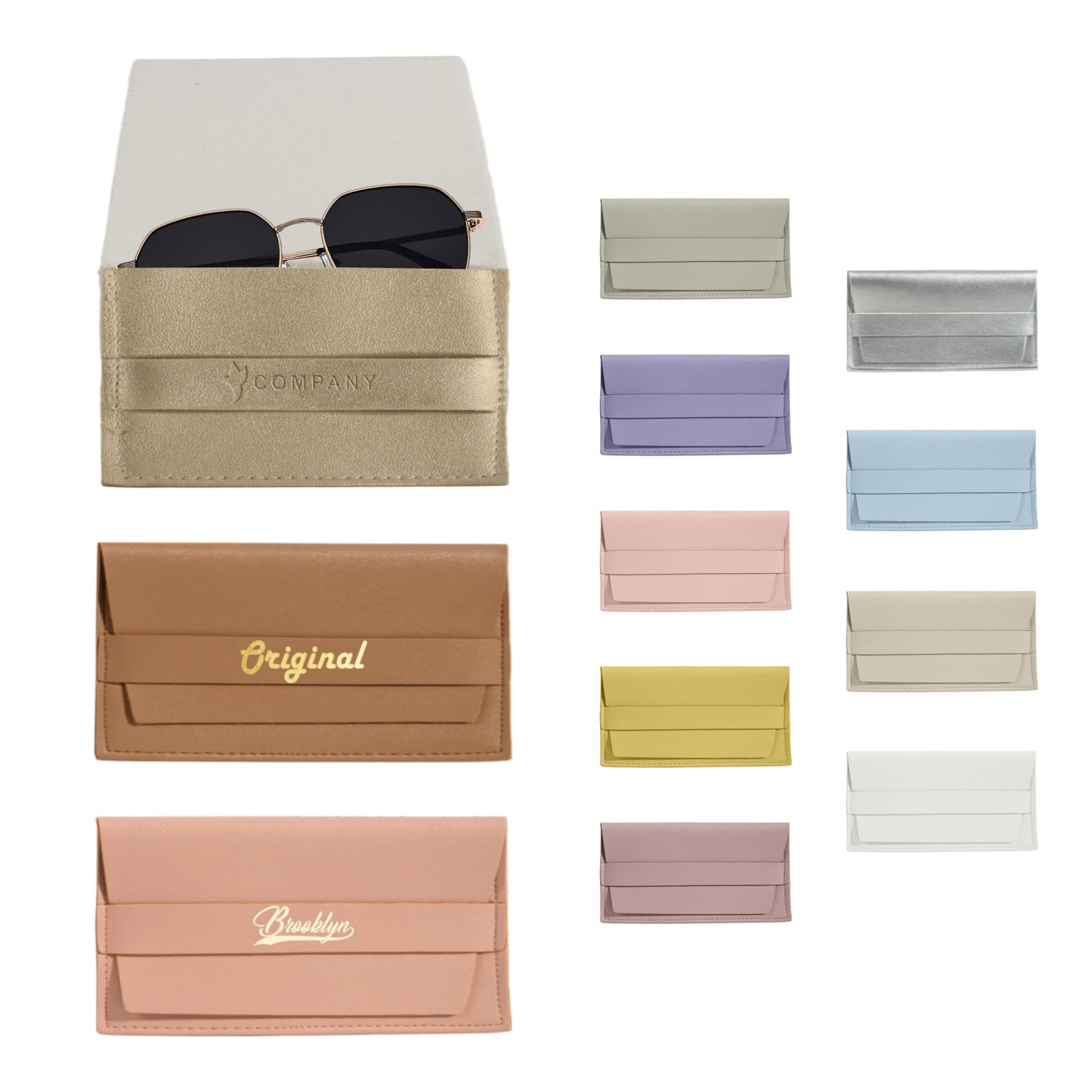 Store your glasses with our PU Leather Glasses Pouch, featuring a flip-open design for easy access. Measuring 17.5x9cm, our pouch is crafted from high-quality PU leather and available in 12 colours. Personalise the pouch through Debossing, Screen printing, or Hot foil stamping to showcase your logos or brand messages for long-lasting results. Ideal for stores, travel kits, or promotional giveaways, our pouch presents your brand through practical functionality.