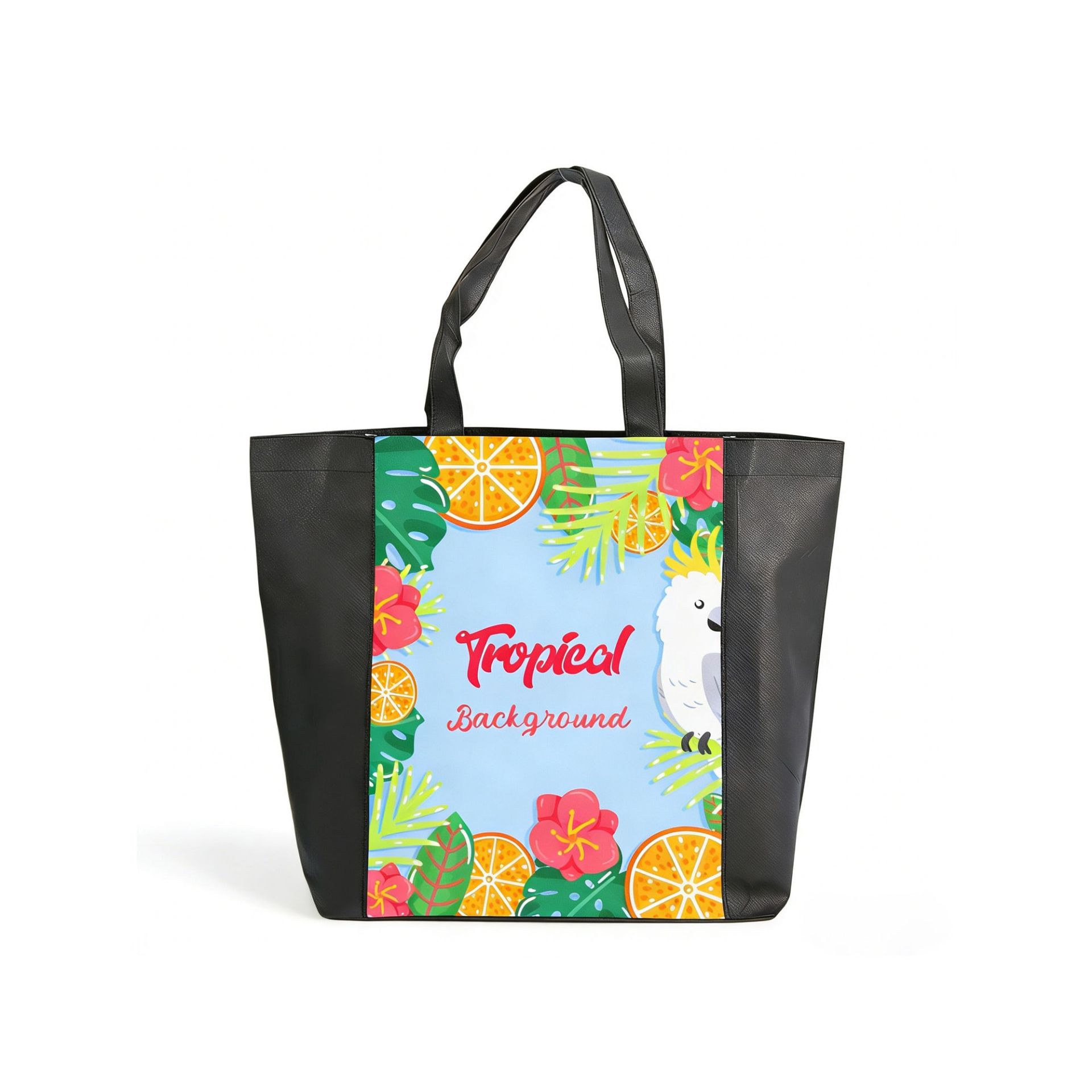 Make a sustainable style statement with our Tote Bag-Full Colour! Made from durable, eco-friendly PET material, this practical bag folds easily for compact storage. Lightweight yet strong, it’s ready for shopping trips, beach days, or daily errands. Personalise the entire surface with sublimation printing for a look that’s uniquely yours. Your go-to accessory for eco-friendly living and everyday adventures!