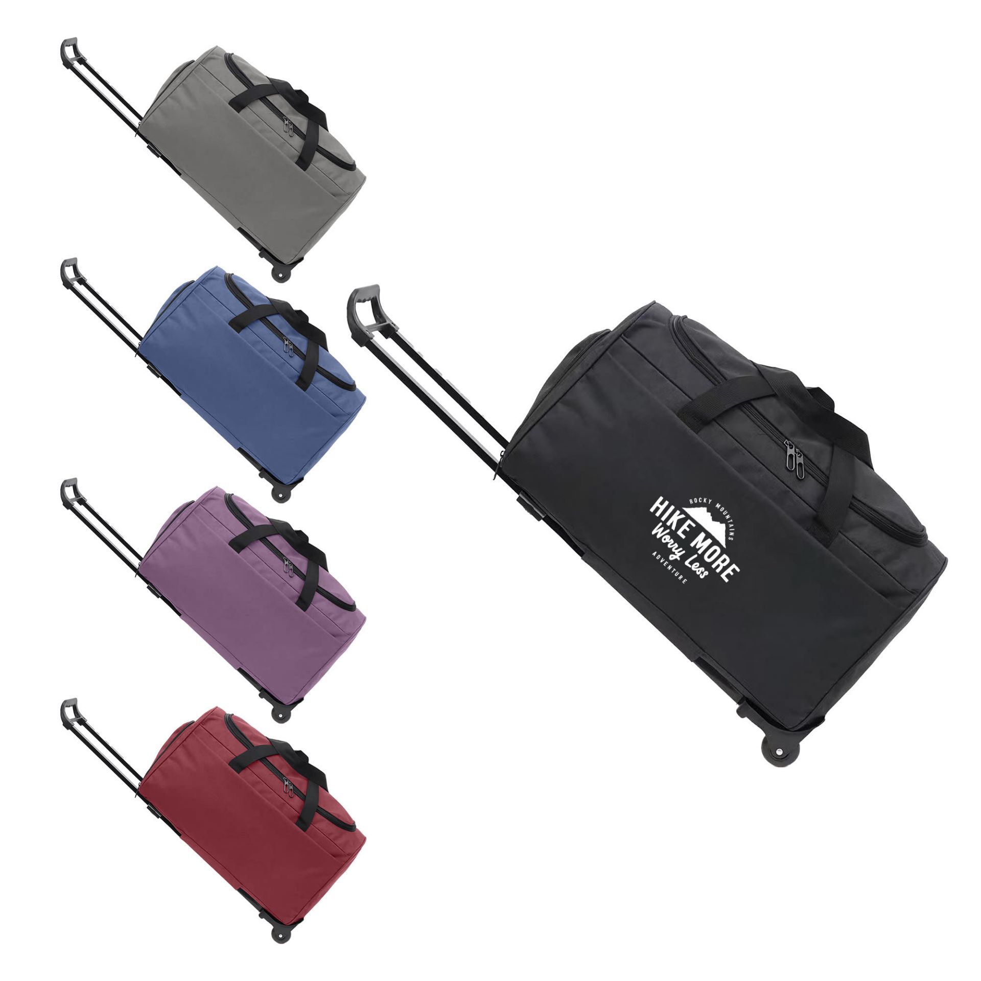 This Wheeled Duffel Bag can be conveniently folded up when not in use. Featuring a front zipper pocket for essentials, a side zipper pocket for shoes and a wheeled zipper pocket with large capacity which makes it a perfect travel companion. Our quality duffel bag is made of Oxford material, that is water resistant and durable. With screen print to showcase your design, you can choose from 5 colours.